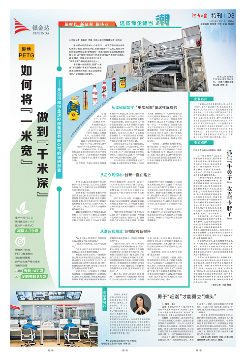《河南日報》聯合《大河財立方》刊文銀金達董事長閆銀鳳《這些豫企相當潮丨河南銀金達控股集團有限公司:如何將“一米寬”做到“千米深”》專題訪談