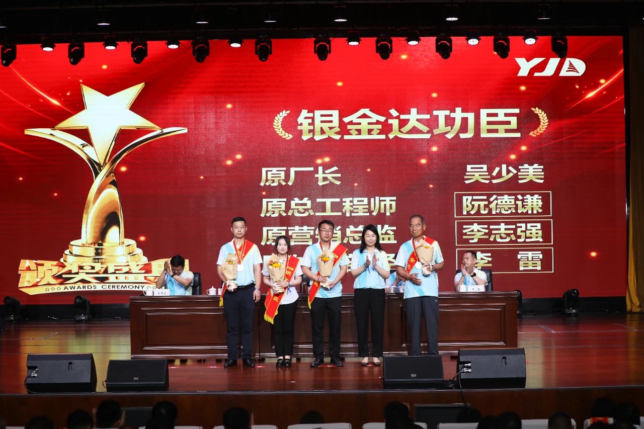 資深員工表彰環(huán)節(jié)溫情涌動(dòng)。37名十年資深員工、20名二十年資深員工以及三十年資深員工郜貴堂依次登臺(tái),他們用十年、二十年、三十年的堅(jiān)守,詮釋了與企業(yè)風(fēng)雨同舟的深厚情誼。吳少美、阮德謙、李志強(qiáng)、李雷四位“銀金達(dá)獎(jiǎng)”獲得者的事跡更是感人至深。創(chuàng)業(yè)元老吳少美在初創(chuàng)期挺身而出奠定根基;產(chǎn)業(yè)鏈總設(shè)計(jì)師阮德謙勾勒產(chǎn)業(yè)版圖;銷售鐵軍李志強(qiáng)將訂單化作騰飛羽翼,開(kāi)拓了大客戶群體;外貿(mào)功臣李雷讓銀金達(dá)品牌走向世界。他們的奉獻(xiàn)精神如星辰閃耀,照亮銀金達(dá)前行之路。鮮花與喝彩,獻(xiàn)給所有以堅(jiān)守為筆、以?shī)^斗為墨,書寫企業(yè)華章的時(shí)光筑夢(mèng)人。