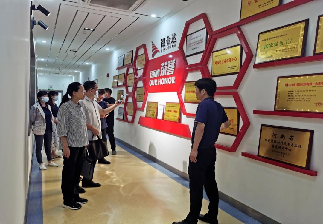 2022年8月11日,新鄉(xiāng)市科技局副局長郝科偉、新鄉(xiāng)市科技局黨組成員、市紀(jì)委監(jiān)委派駐市科技局紀(jì)檢監(jiān)察組組長李超平等一行,到河南達(dá)新源新材料有限公司開展惠企利企政策落實情況專項調(diào)研。衛(wèi)輝市科工信局副局長彭文林、科長張衛(wèi)華等相關(guān)領(lǐng)導(dǎo)陪同調(diào)研,銀金達(dá)集團(tuán)創(chuàng)新協(xié)同中心主任周宏濤、新材料公司副總經(jīng)理、技術(shù)總監(jiān)張啟綱等陪同匯報工作。