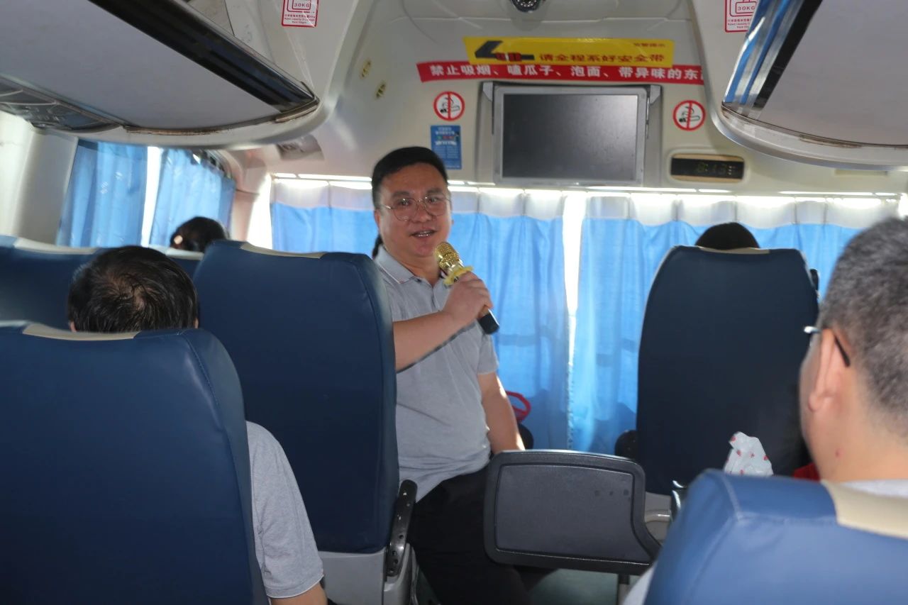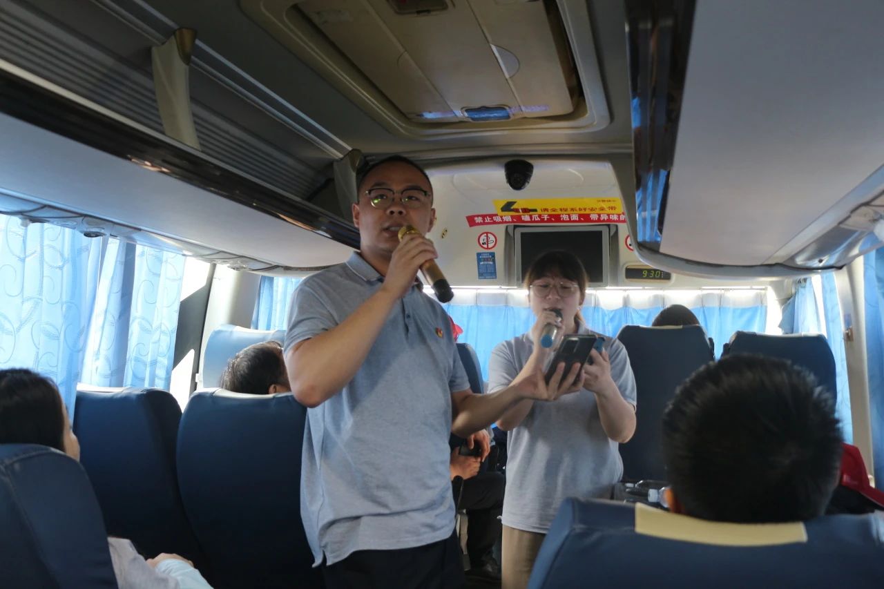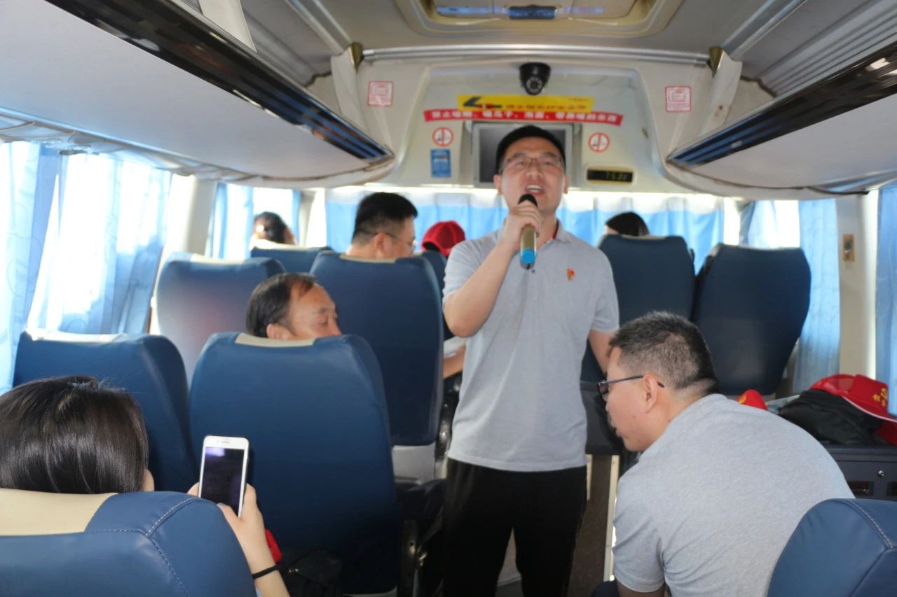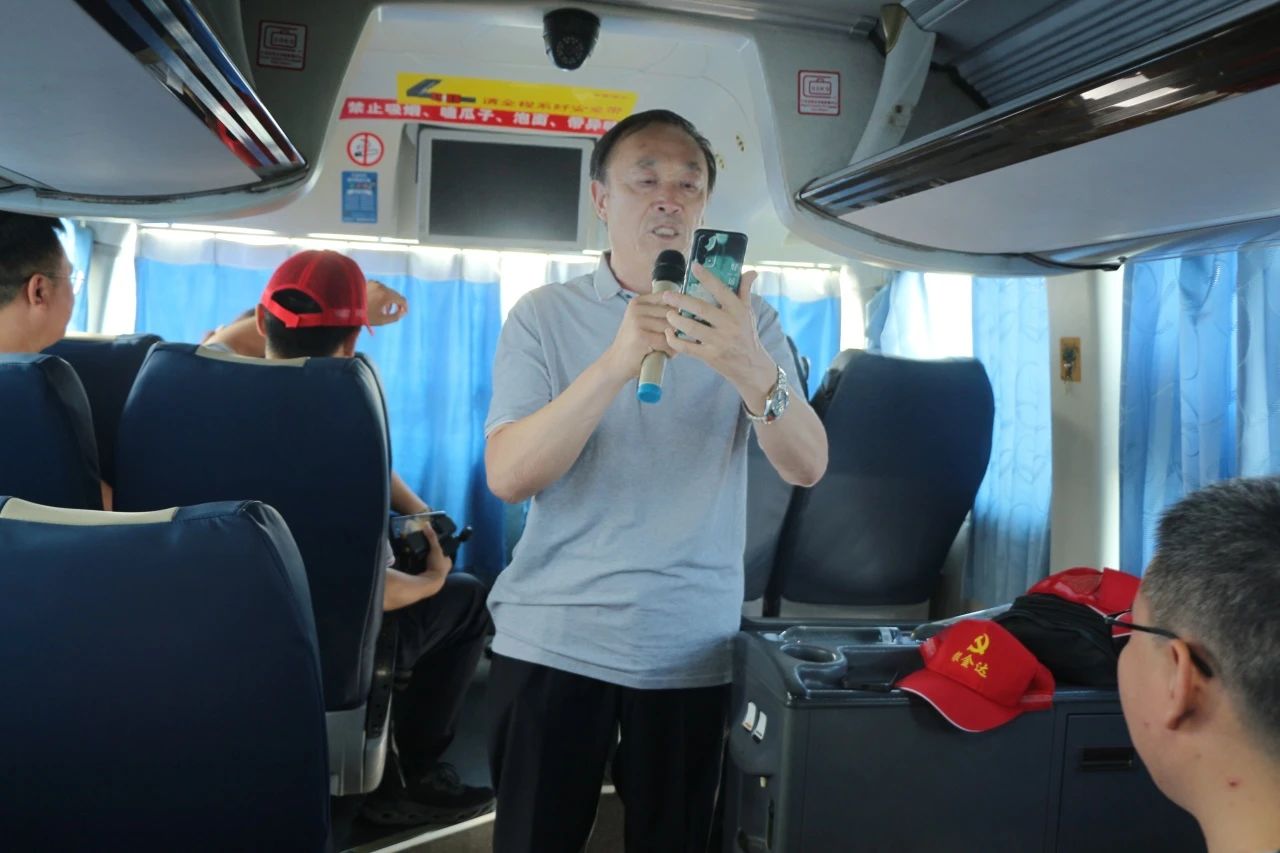 在行駛途中的紅歌賽環節,領導帶頭演唱,車廂內氣氛熱列,《把一切獻給黨》《太行頌》《沒有共產黨就沒有新中國》《一支鋼槍》《珊瑚頌》《強軍戰歌》等一首首紅色經典曲目讓人激情滿懷。